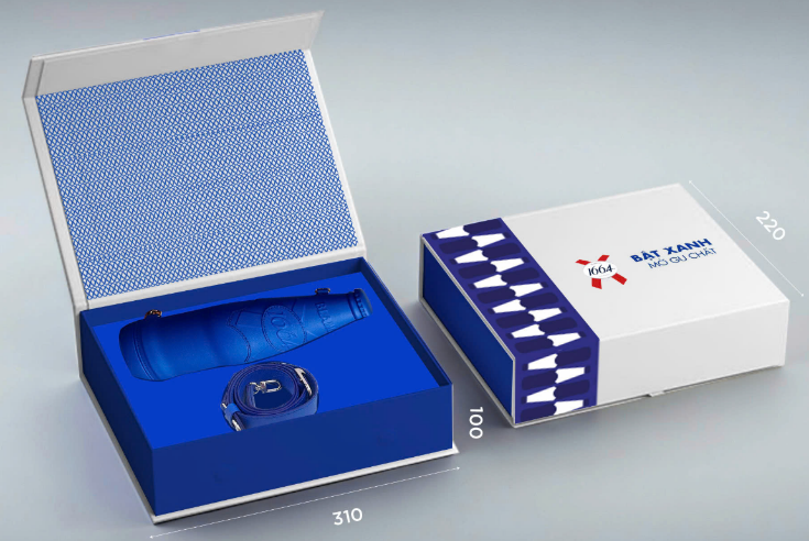 - Hộp đựng cao cấp với chất liệu giấy Couche, bồi chipboard 3 lớp, khay mút eva bồi nhung xanh trên bề mặt. Kích thước hộp đựng được túi da, in offset, dập nổi logo.
